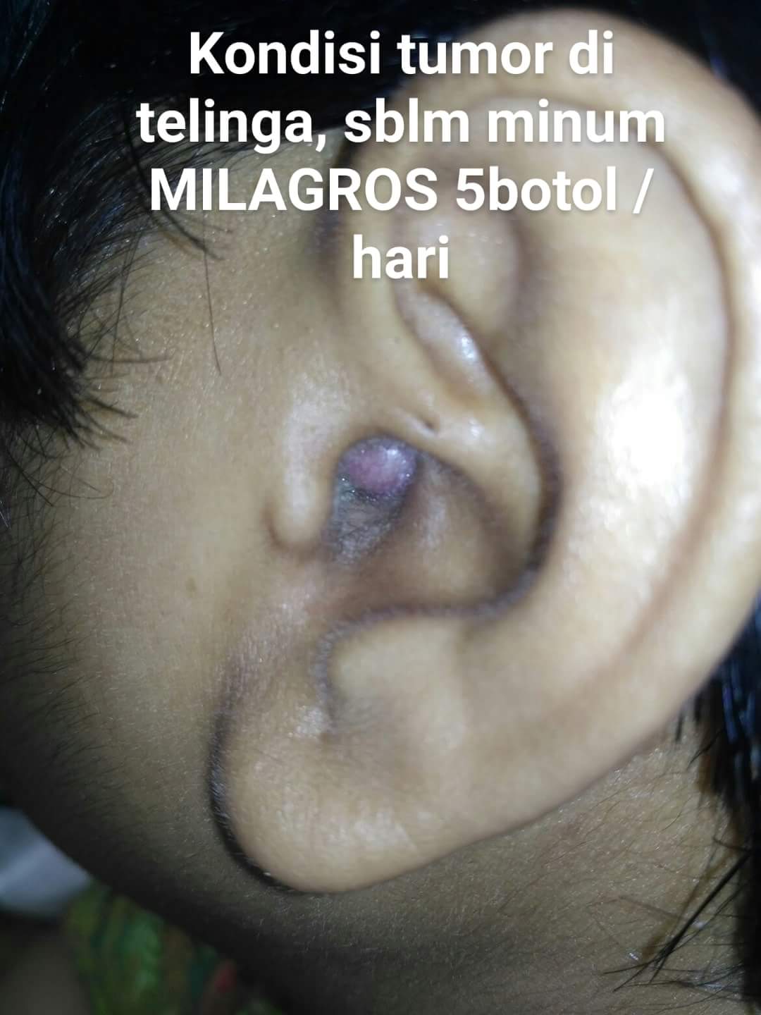 Salah satu member milagros yg divonis dokter terkenal tumor ganad ditelinga.TUMOR bertahap mulai pecah dan keluar nanah setelah konsumsi per hari 5botol milagros.Dahsyat semakin banyak testimoni nyata disekitar kita.Yang punya masalah apapun tidak ada salahnya mencoba terapi dengan milagros.